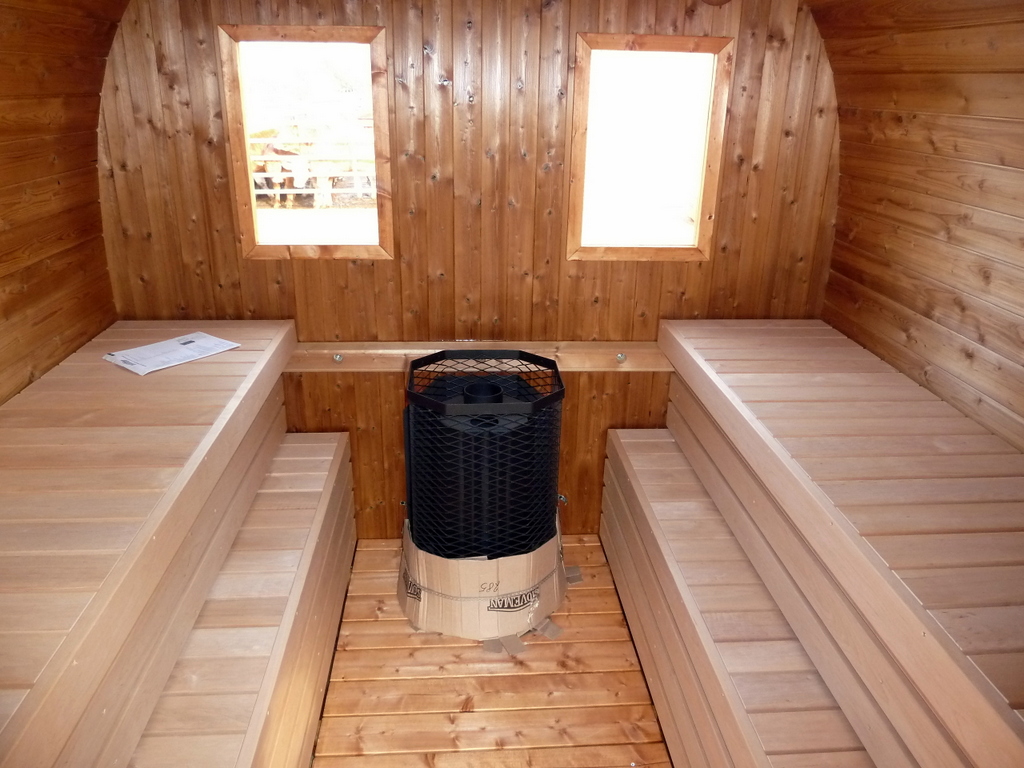 Jede Sauna kann wahlweise mit einem Holz- oder Elektroofen betrieben werden.