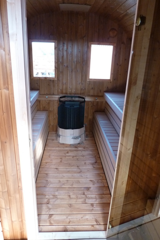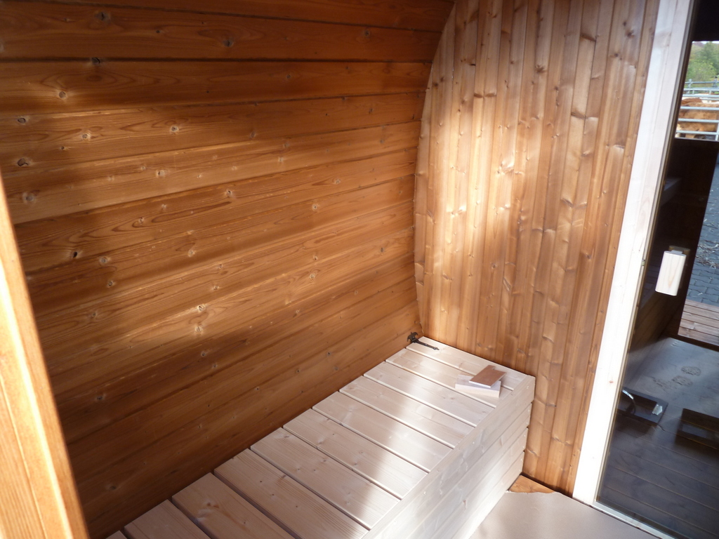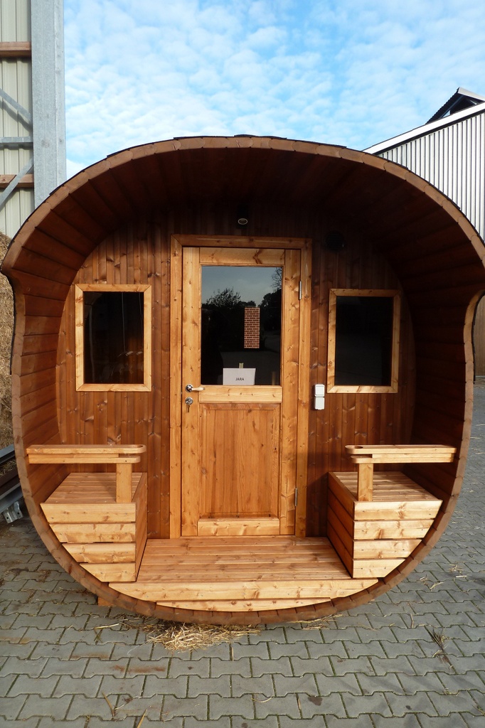 Geschätzt werden die Fasssaunen aus Tannenholz, weil sich das Holz positiv auf das Raumklima und die Verwirbelung des Dampfes bei Aufgüssen auswirkt.