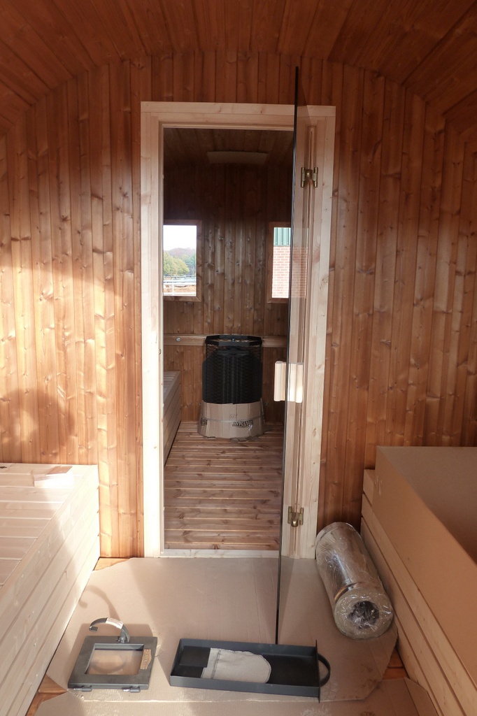Durch die handwerkliche Fertigung sind Sonderwünsche kein Problem. Maximal können Saunen mit einer Länge von 6,00 m und einer Höhe von 2,40 m gefertigt werden. Die Sauna kann in mehrere Räume wie Ruhe-, Umkleide- und Saunaraum aufgeteilt werden.
