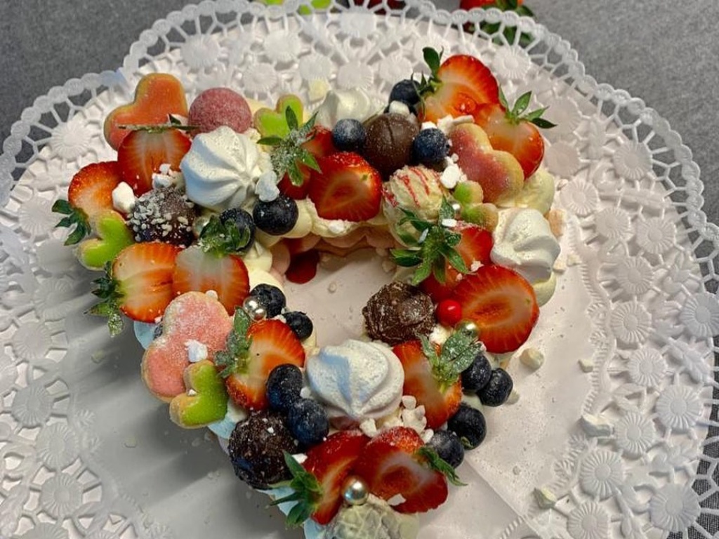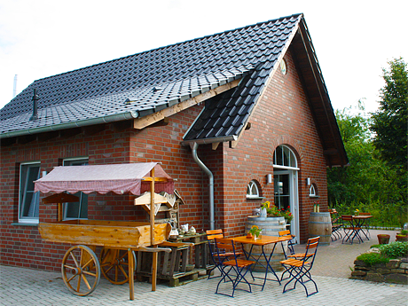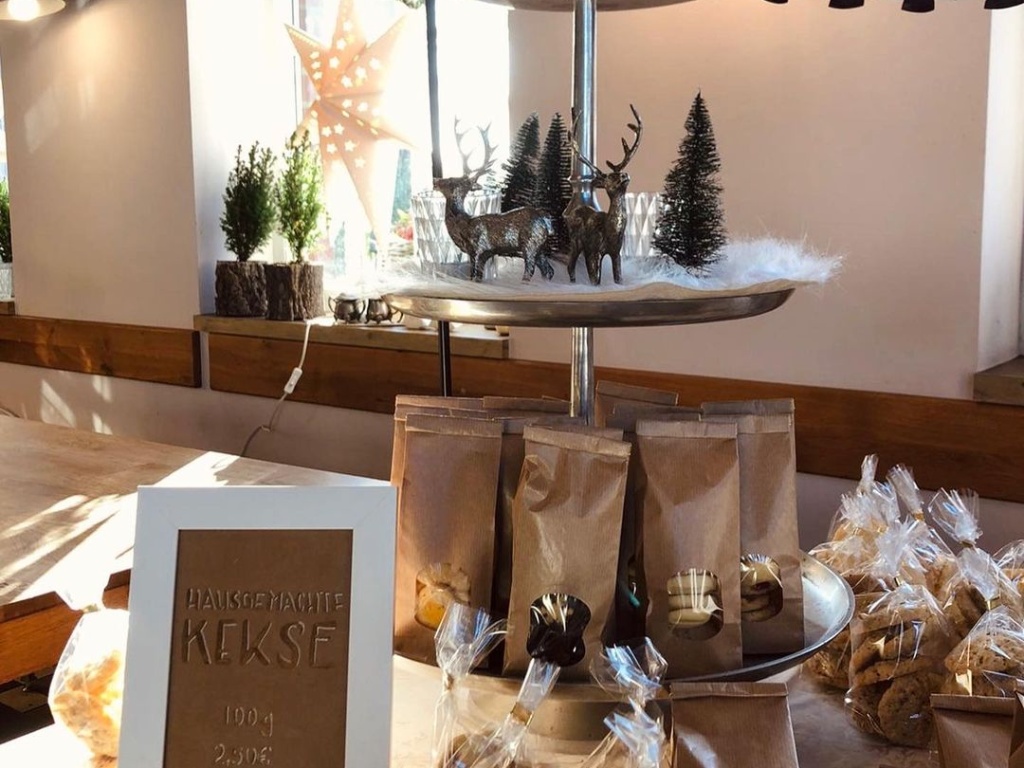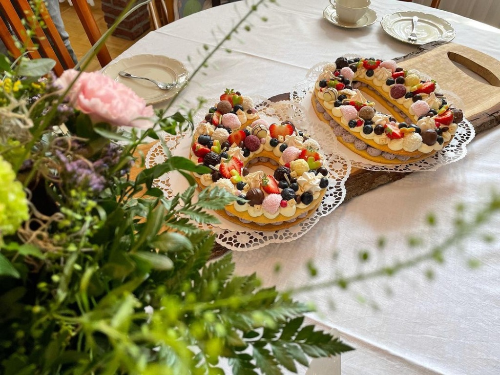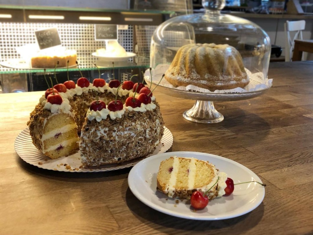 Den Kuchen können Sie bei uns im Backhaus oder bei schönem Wetter draußen auf der Terrasse genießen. Gerne können Sie den Kuchen auch mit nach Hause nehmen.